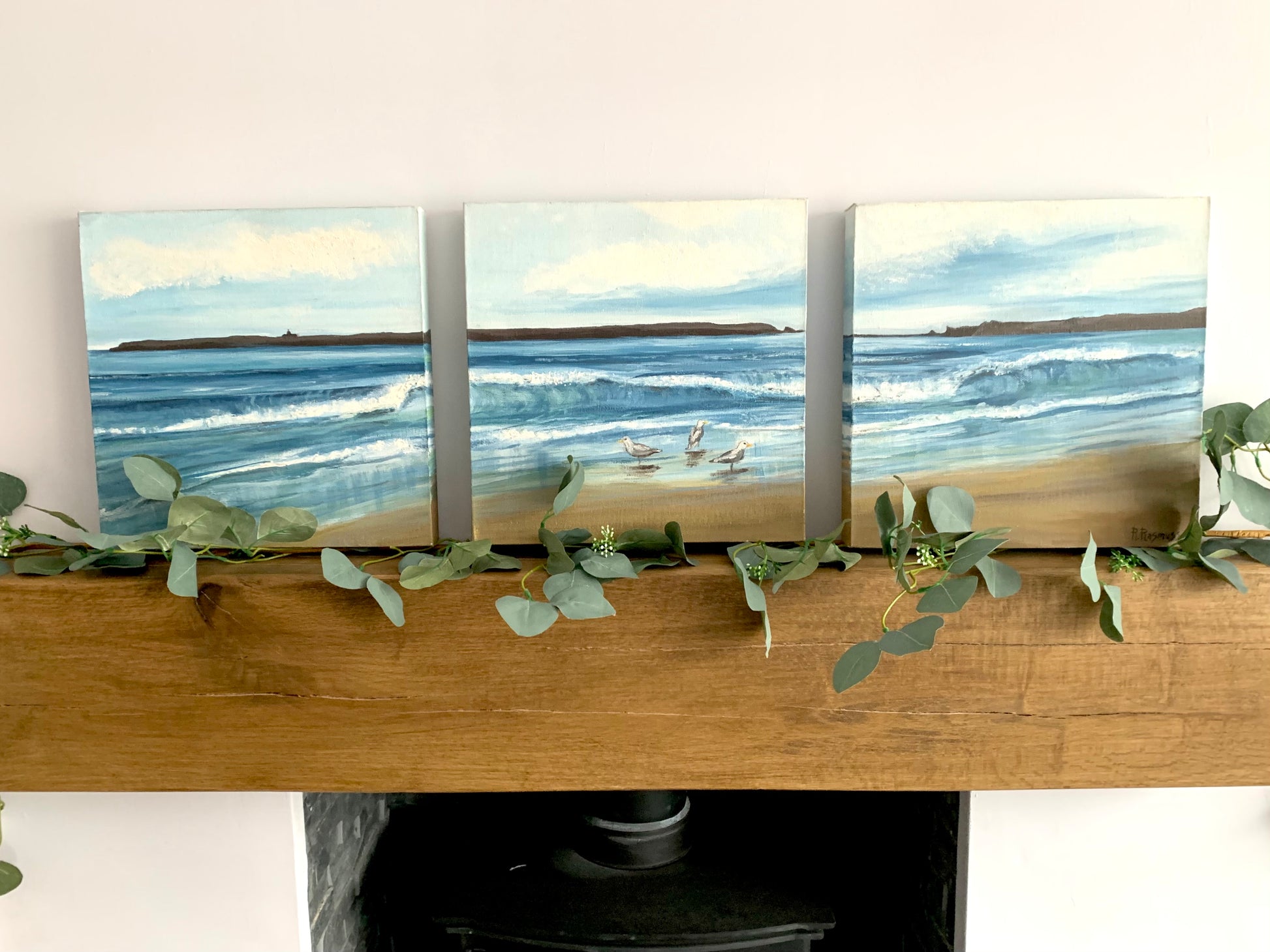 Three Original Paintings of a panoramic view from The South Beach in Tenby.