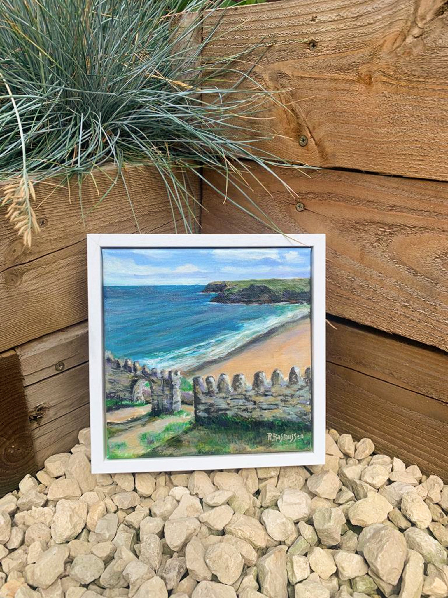 Barafundle bay is a quaint little beach that makes you feel like you are somewhere else more exotic! This mini Original comes framed in a lightweight white floating edged frame.