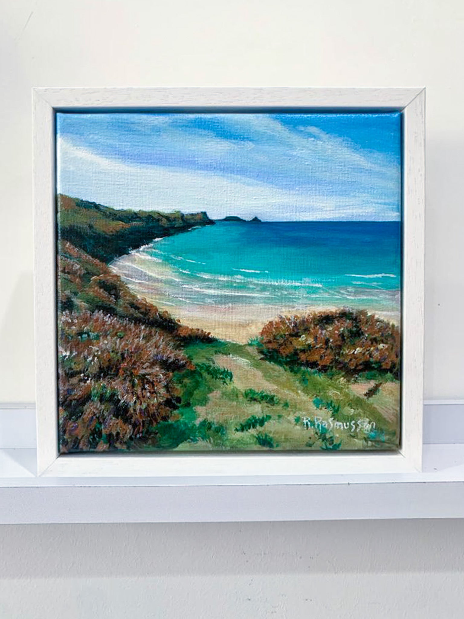 This painting depicts how stunning the view can be on a bright summers day. it is placed in a lightweight white floating edged frame.