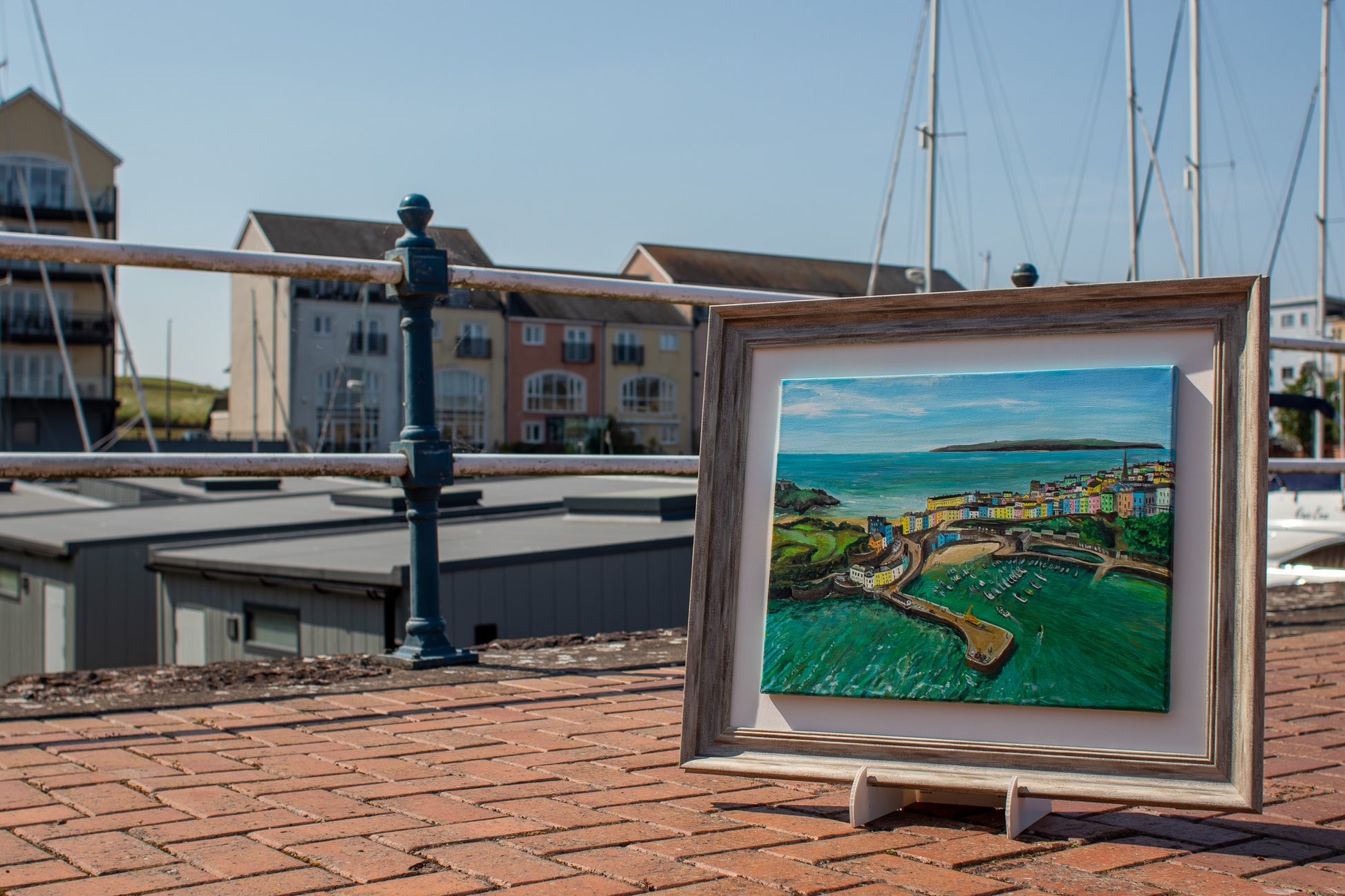 A Birds eye view of the beautiful town Tenby, captured on a blazing hot summers day.