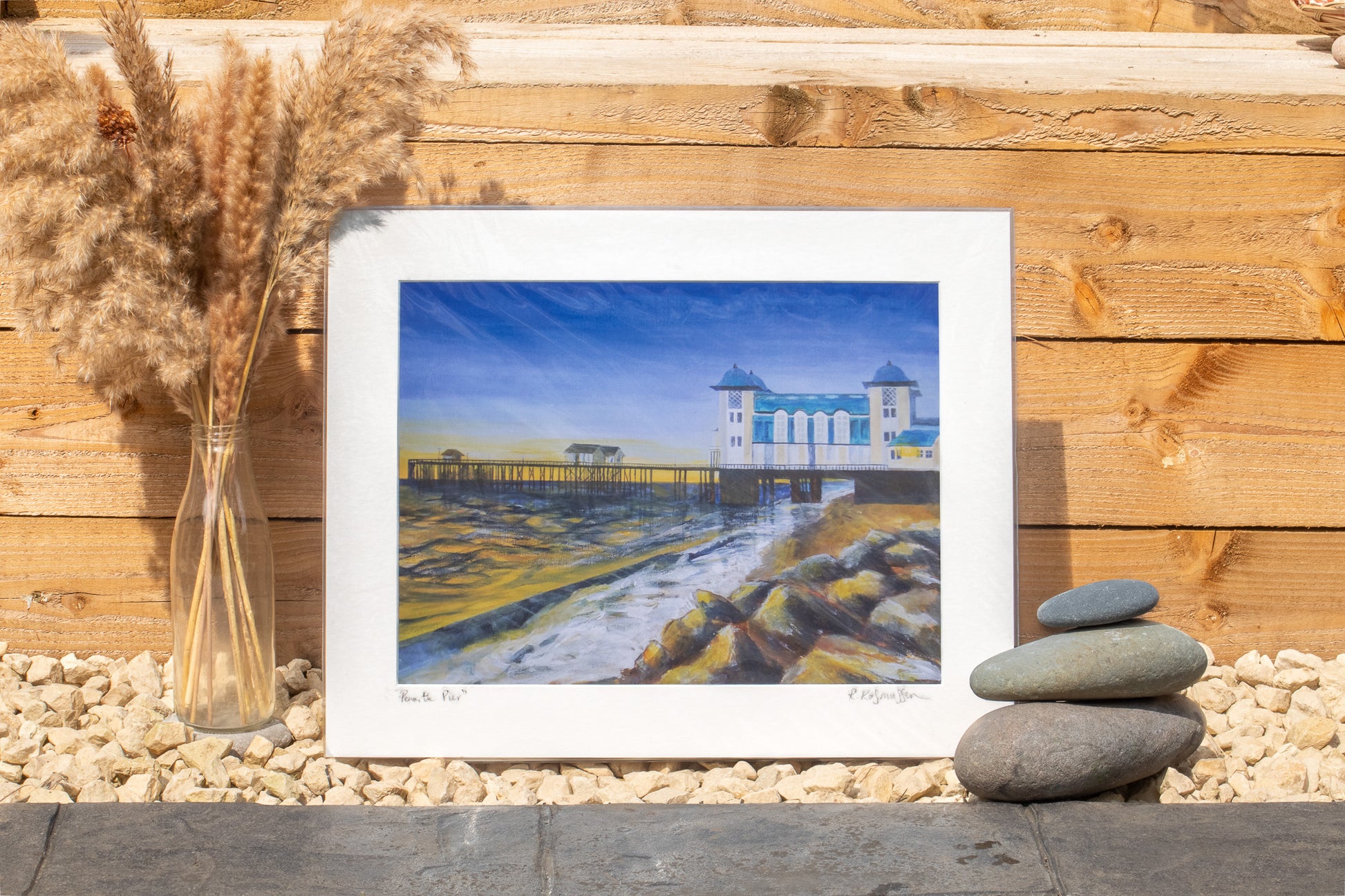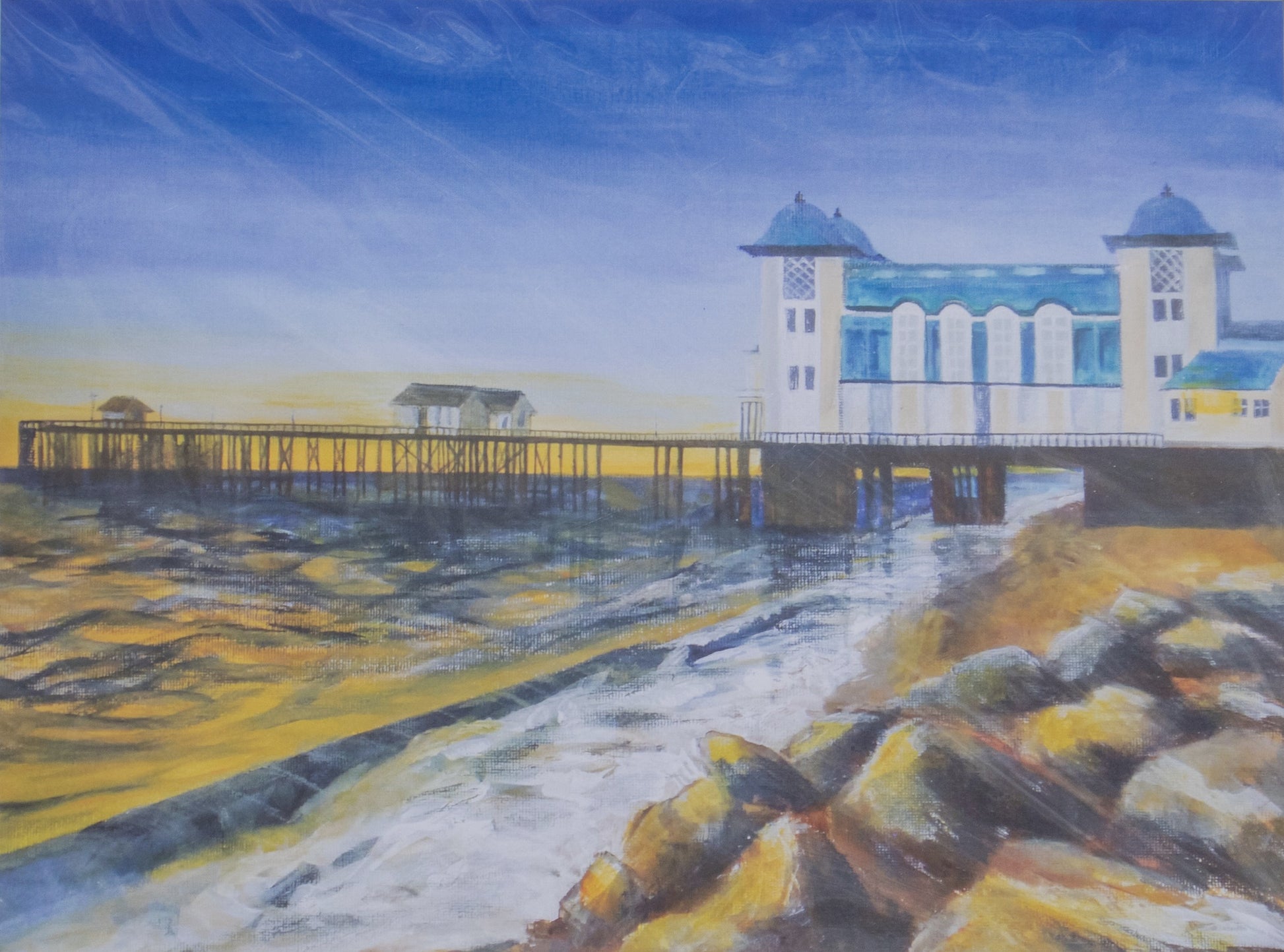 "Penarth Pier created using a photo reference. I particularly enjoyed painting the oranges through the sea to reflect the skyline."